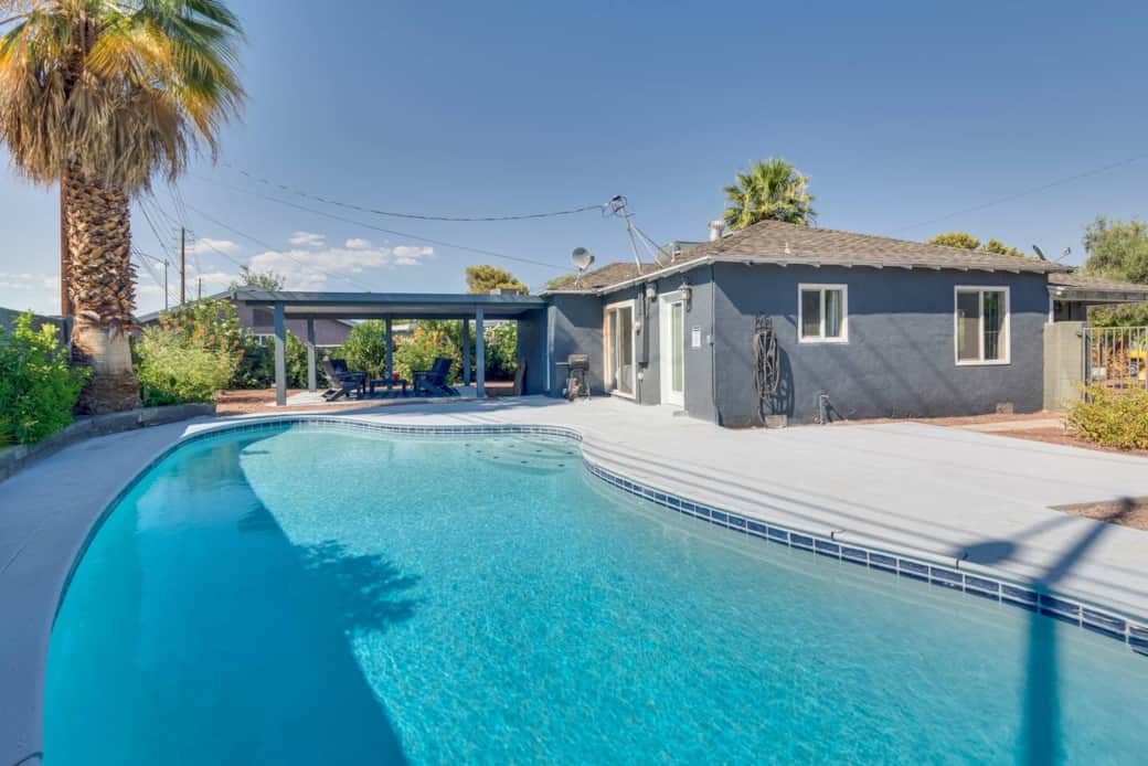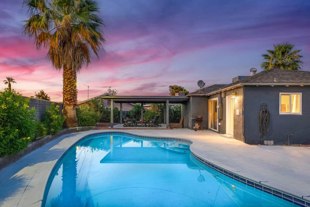 Welcome to your centrally located oasis, just minutes away from the dazzling lights of the Strip! Step into luxury with three bedrooms and two full bathrooms awaiting your stay. Dive into relaxation in the expansive backyard boasting a sparkling pool, inviting you for a refreshing dip year-round. Enjoy the convenience of a fully equipped kitchen and unwind in the cozy living room. Entertainment awaits with two Roku TVs, ensuring endless enjoyment throughout your stay. Don't miss out on this ultimate getaway experience!