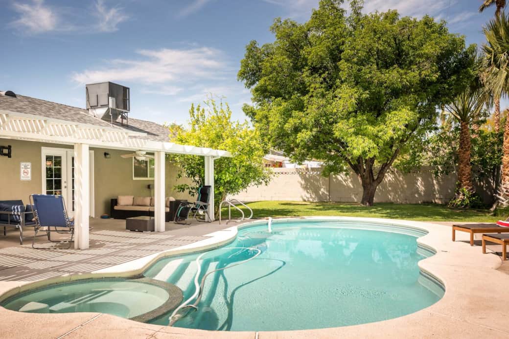 This fabulous property is located just minutes from the Strip, but tucked away in a very family friendly and quiet neighborhood. You will not believe how close to the action you are, but how quiet it feels! This neighborhood is full of classic, old school Vegas style homes. *please note the spa is currently not functional.