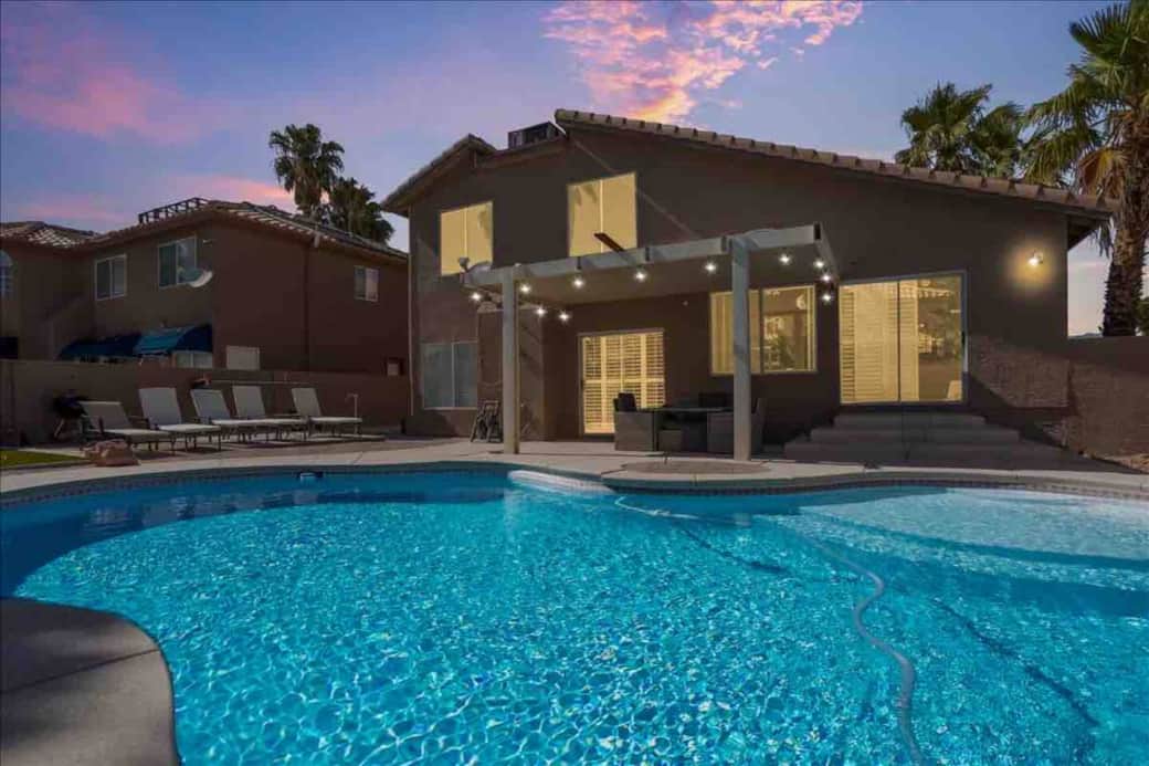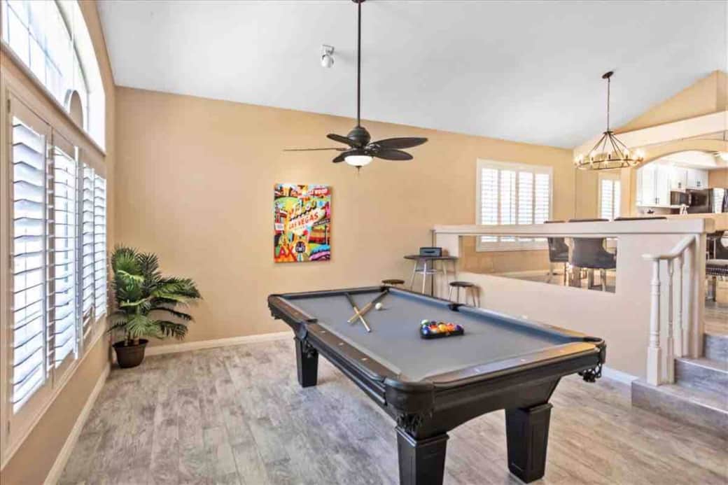 Step into your dream getaway just 15 minutes from the vibrant Strip! This spacious 4-bedroom, 3-bathroom retreat offers ample space for up to 10 guests to unwind in comfort and style. Dive into relaxation in the large backyard oasis, complete with a shimmering pool perfect for soaking up the Nevada sun. Inside, you'll find a fully equipped kitchen, ideal for whipping up delicious meals to enjoy in the dining room or alfresco by the pool. After a day of exploring, gather in the inviting living room for cozy evenings together, or challenge friends to a game on the pool table. With luxurious amenities and proximity to all the excitement of Las Vegas, your unforgettable vacation awaits at this fabulous retreat!